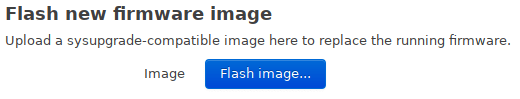 sysupgradeaprès avoir téléchargé le firmware adéquat. - par l’interface d’administration, menu ‘System’ > ‘Backup / Flash Firmware’ puis dans la section Flash new firmware image cliquez sur le bouton [ Flash image ].